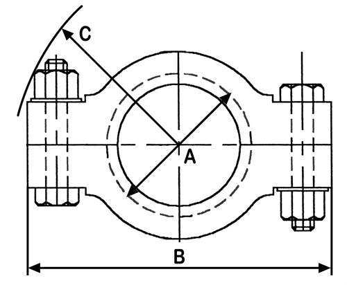 En tvådelad bygel konstruerad för höga tryck, försedd med bult på båda sidor