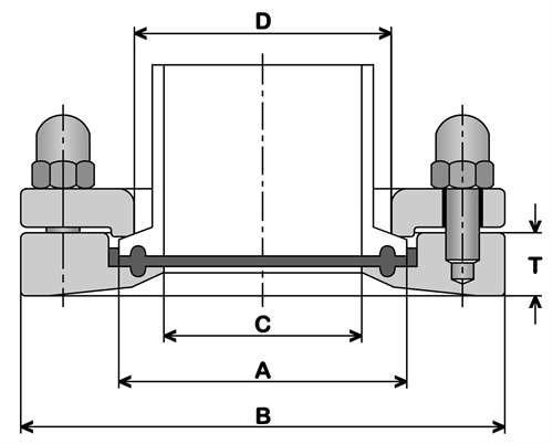 En hygienisk anslutningsfläns för olika typer av clampdetaljer,