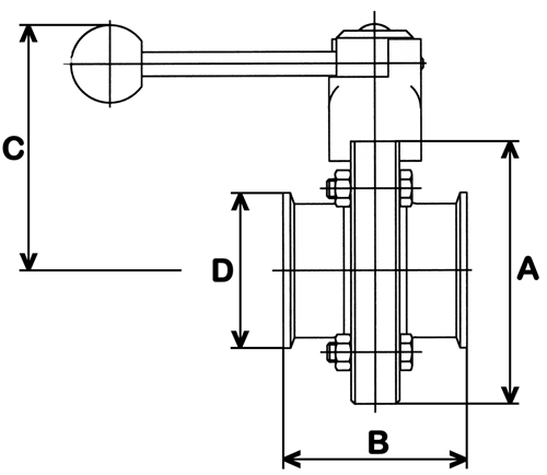 Spjällventil MB SMS 1'' 316L EPDM TC anslutning utan handtag